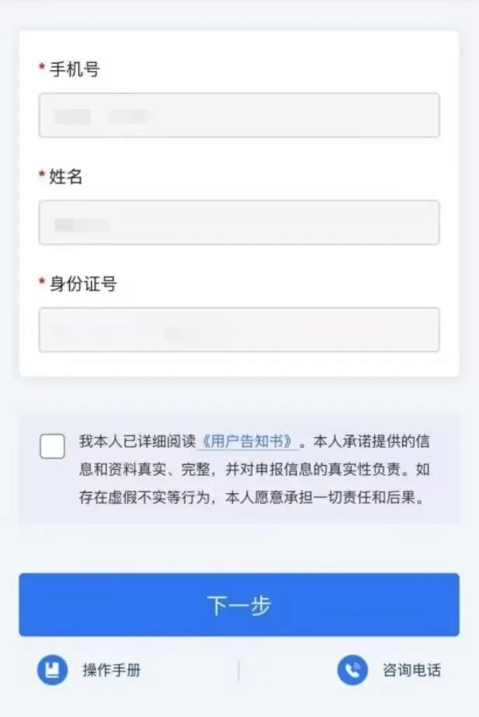 平台将自动获取补贴申请人云闪付实名信息及手机号。 勾选并阅读《用户告知书》后,点击“下一步”填写补贴申请详细信息,主要涉及申请人信息、银行卡信息(补贴资金发放所需)、置换旧车信息、购置新车信息。