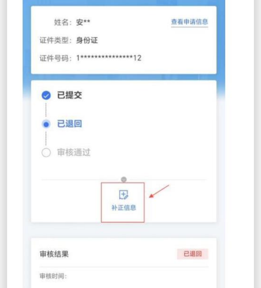 当审核退回时,可进行【补正信息】,补正后重新提交的信息,需重新进入受理审核环节。